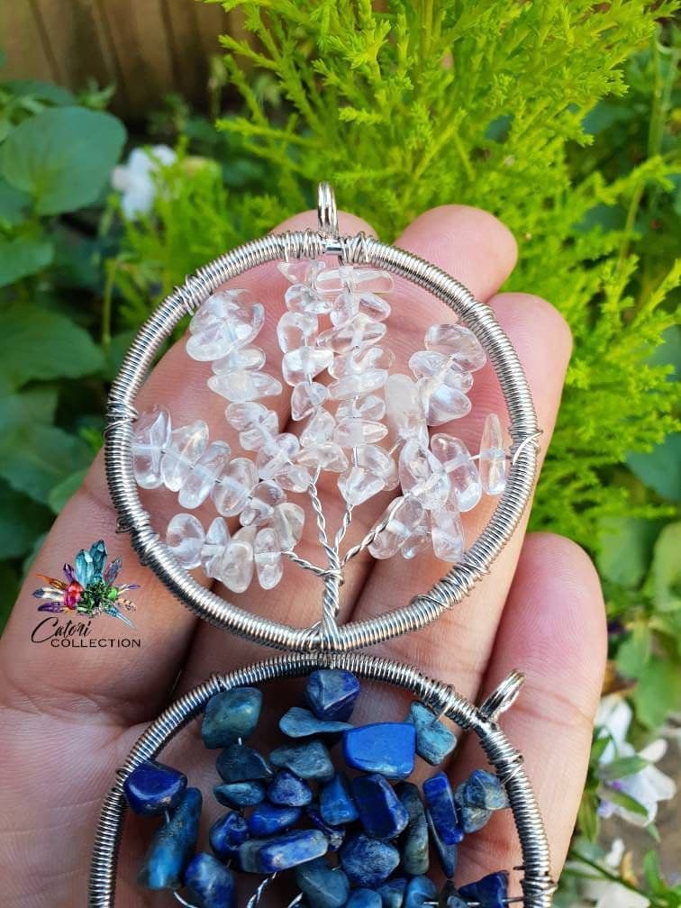 Amazonite, Lapis Lazuli and Clear Quartz chips Tree of Life Silver Wire (not sterling silver) pendants
